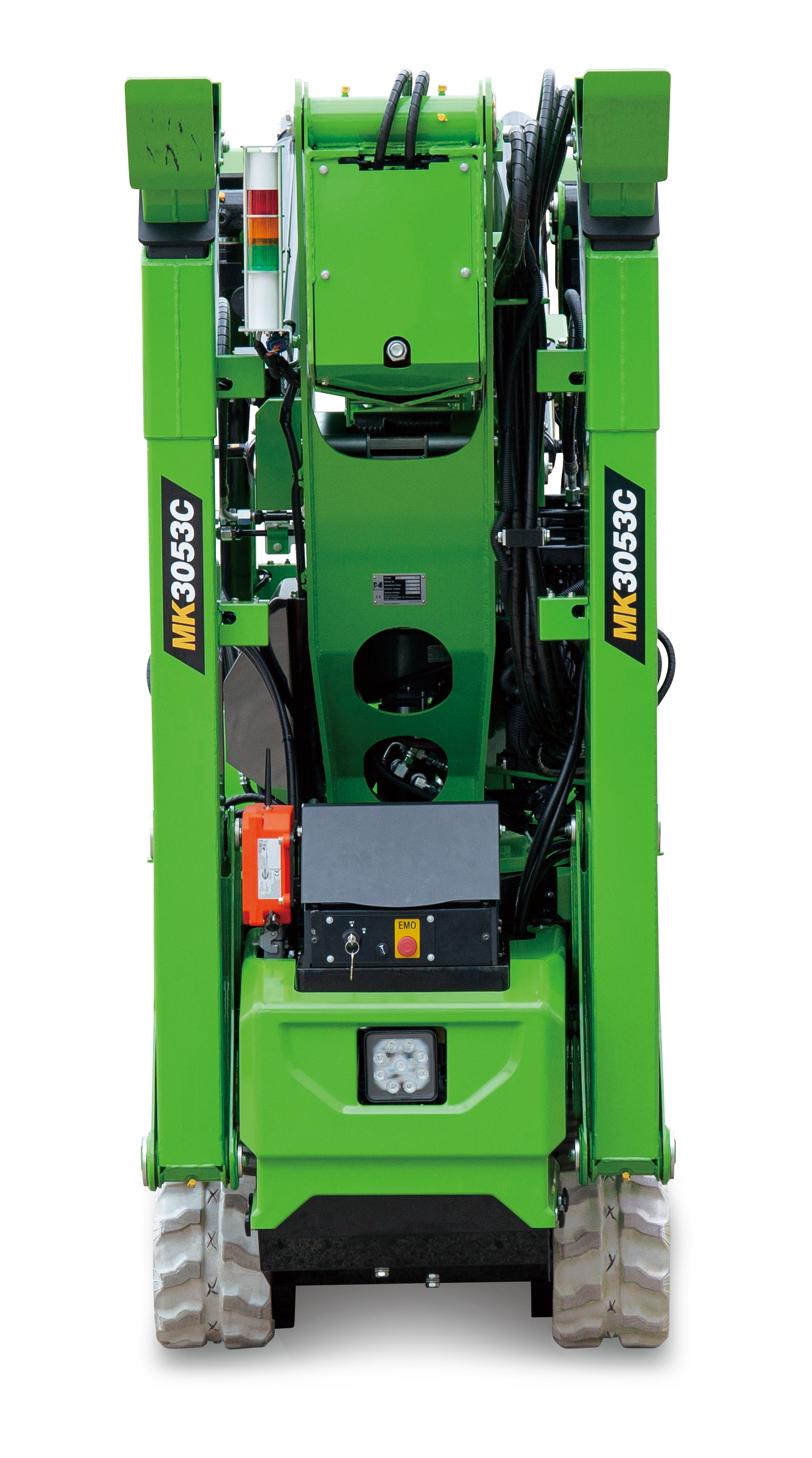 Der neue MK 3053 ist der neueste und innovativste Knickarm-Ausleger von Maeda. Es handelt sich um einen Voll-Proportionalen, funkferngesteuerten Maeda Minikran mit einem vollautomatischen fünfeckigen Teleskopausleger. Zudem verfügt der dreistufige Knickarm-Ausleger oder auch als hydraulischer Fly-Jib genannt über einen vollautomatischen fünfeckigen Teleskopausleger. Die automatische und stufenlose Einstellung von mehreren Auslegern sowie das in der Breite variable verstellbare Raupenfahrwerk heben diesen Minikran von den anderen Maeda Minikran deutlich hervor. Der MK 3053 ist in seiner Größe immer noch schmal genug um durch eine Standardtür zu passen. Er verfügt über eine Hubkapazität von 2, 98 t und eine Hubhöhe von 16,95 Meter.
