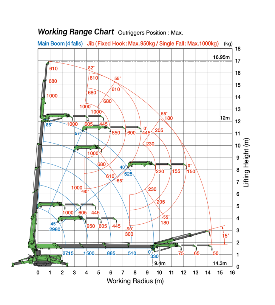 • Outrigger Max. Extended Width – (Lateral) 4.546mm x (Front) 4.537mm x (Rear) 4.315mm