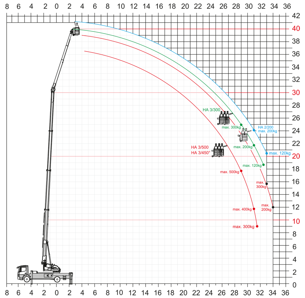 - Boom (4,500-500 kg) – 6.65 – 18.80 m