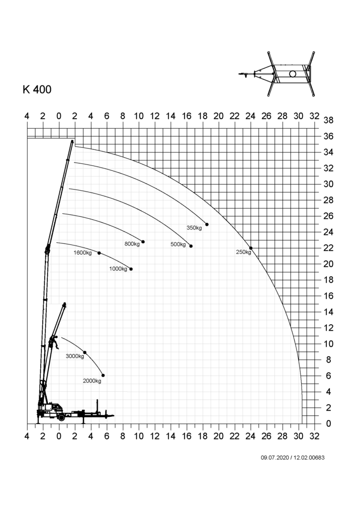 With the newly developed V2-support, the K400 has a support behaviour that is otherwise only known from large truck cranes. It ensures a quiet and safe stand even with high loads. The large lift of the outriggers enables a consistently large support surface even on uneven terrain and thus high performance values.