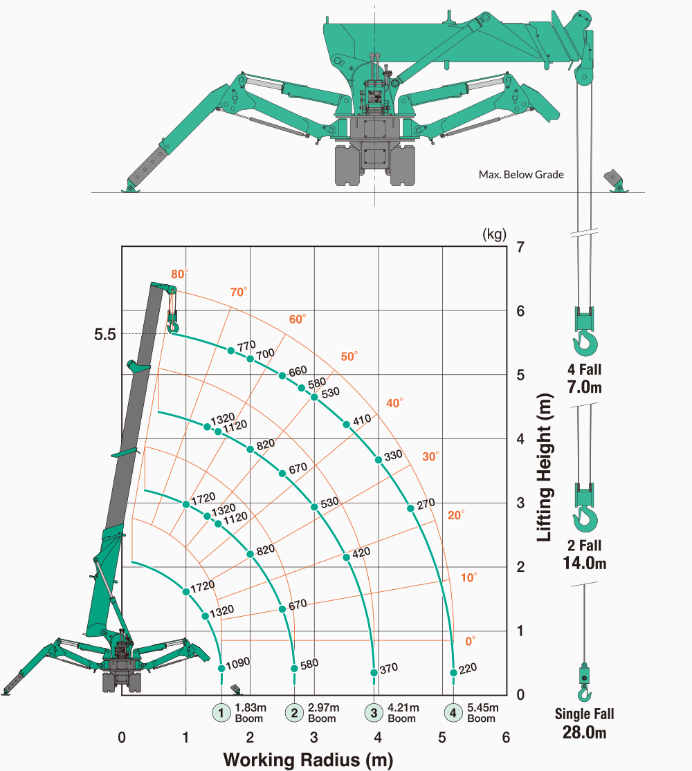 - Max. Reach Below Ground – 7.0m (4 falls)