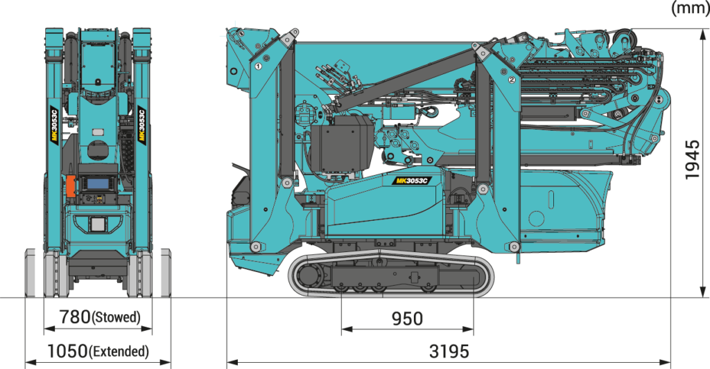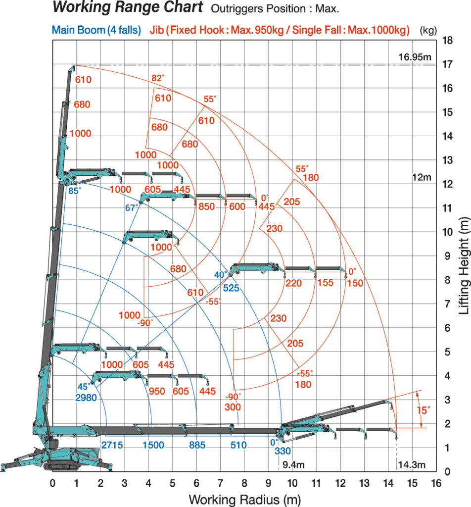 - Outrigger Max. Extended Width – (Lateral) 4.460 mm x (Front) 4.560 mm x (Rear) 4.500 mm