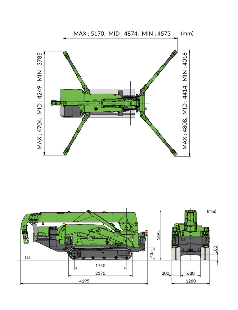 - Stödben max Förlängd bredd – (Lat.) 5,170mm x (Fr.) 4,808mm x (Re.) 4,704mm